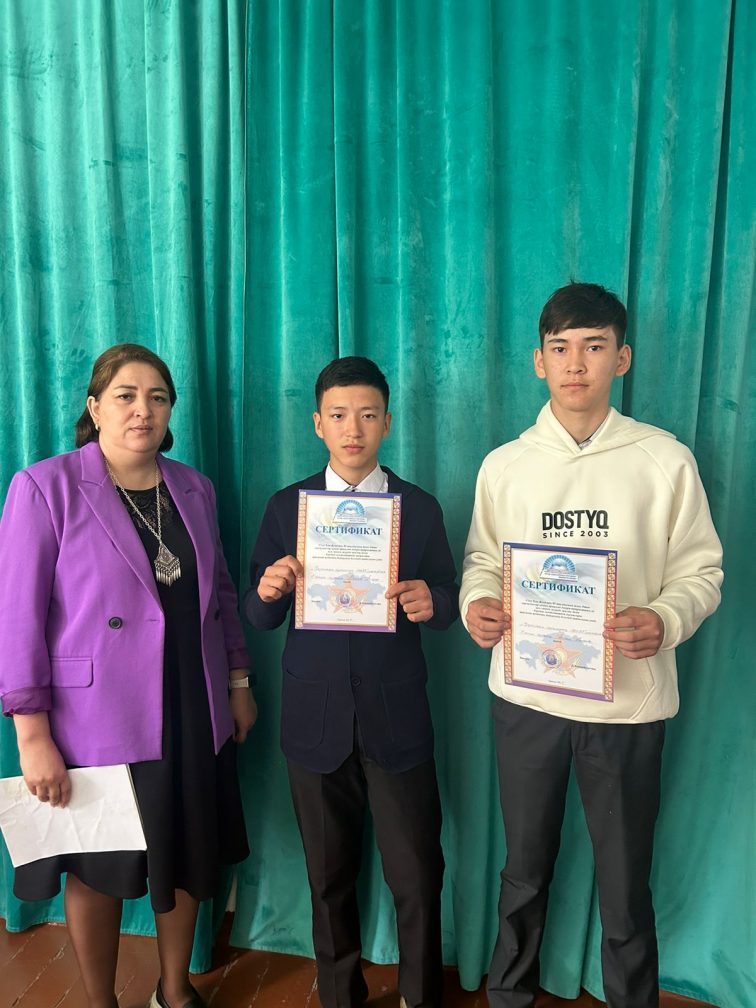 Ұлы Жеңістің 80 жылдығына және Отан қорғаушылар күніне арналған әскери-патриоттық ән мен саппен жүруде жалпы орта білім беретін мектептерінің оқушылары арасында аудандық байқауы өтті. Оған 9-сынып оқушысы Болат Аман және 8-сынып оқушысы Матаев Тимур қатысып,сертификатпен марапатталды. Жетекшісі :Қошпай Д.Қ.