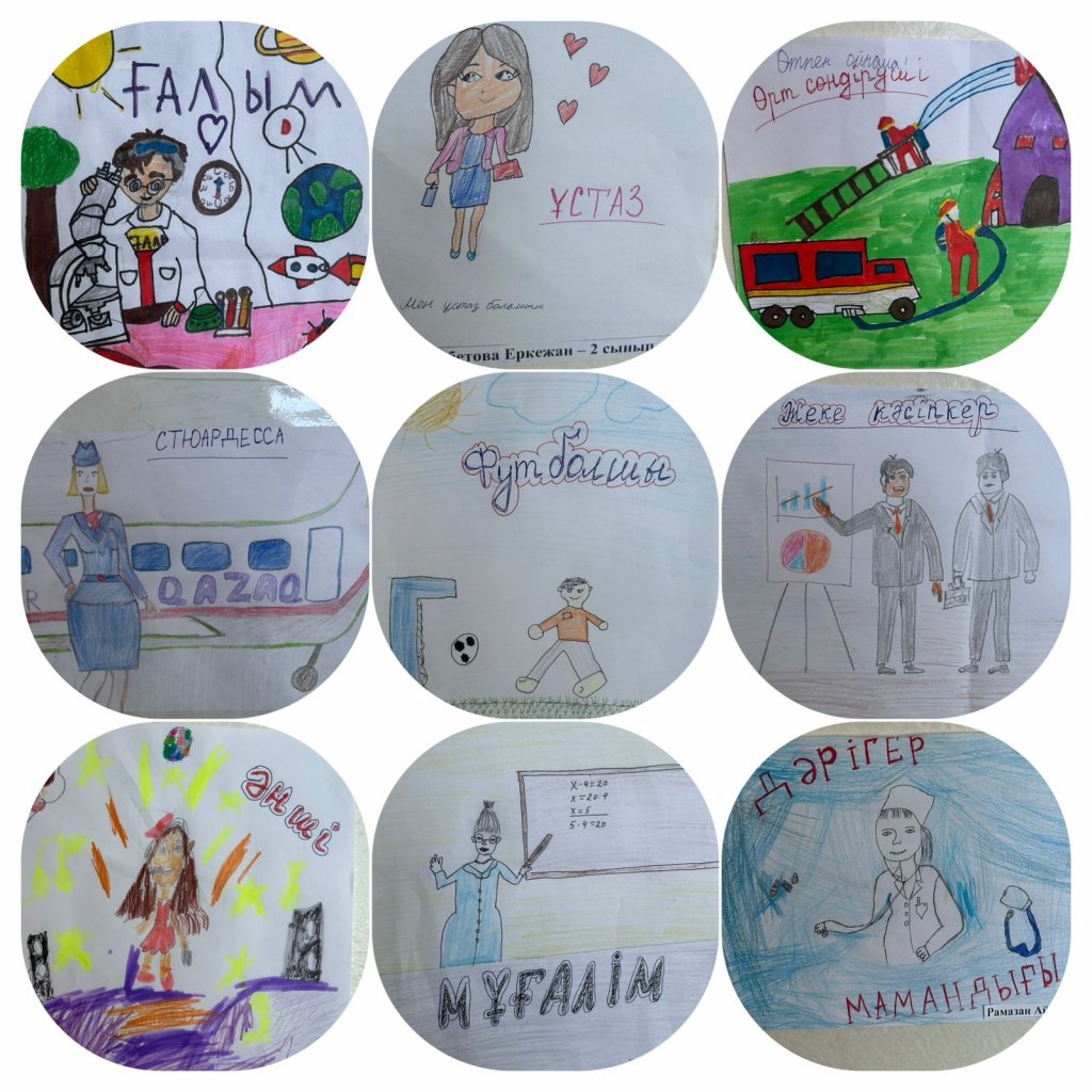 Көрме барысында оқушылар өз суреттерін таныстырып, таңдаған мамандықтары туралы ойларымен бөлісті. Бұл шара балалардың сөйлеу мәдениетін дамытып қана қоймай, өз мақсаттарын айқындауға ықпал етті.